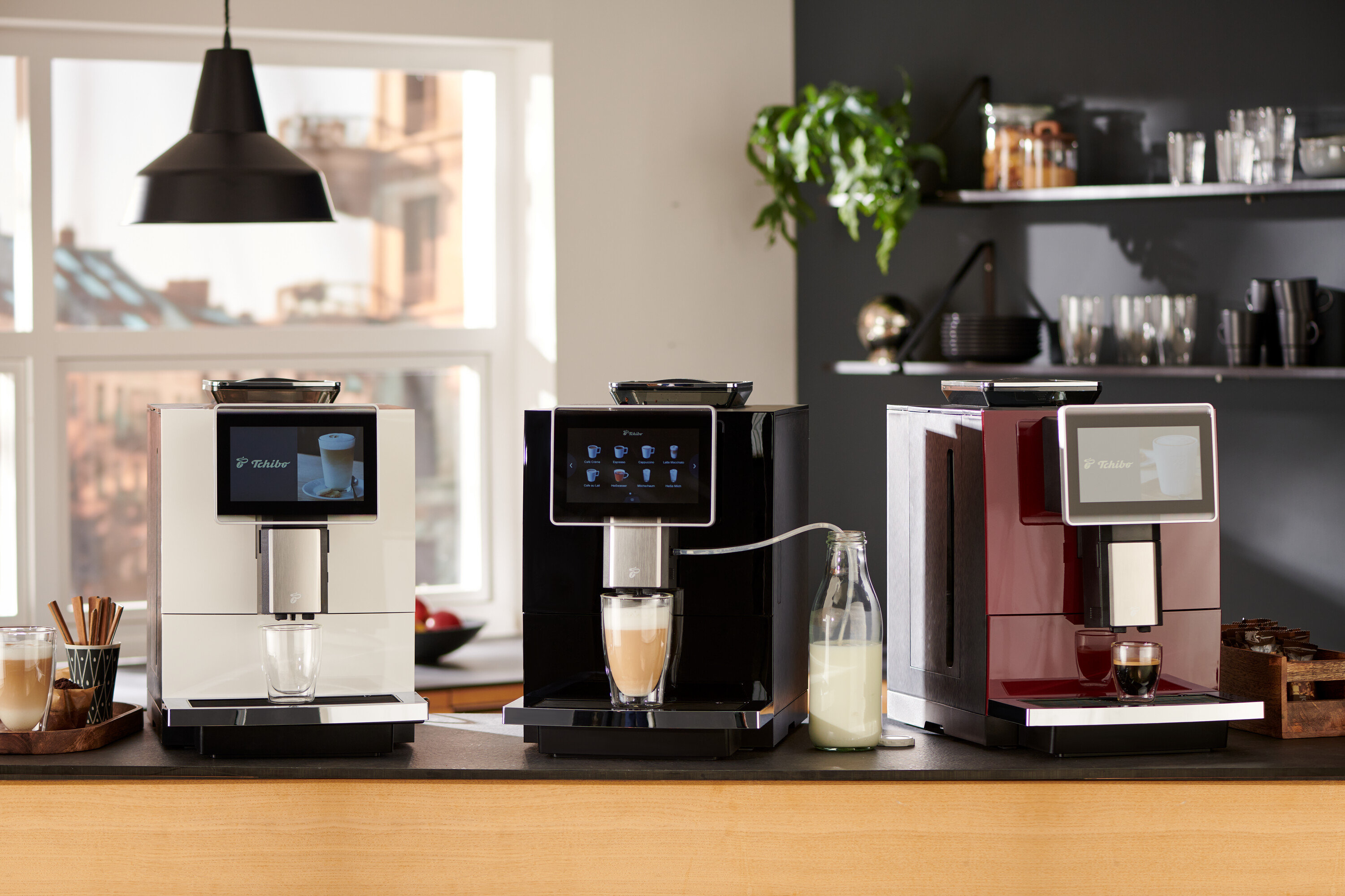 Der kompakte Kaffeevollautomat „Tchibo Office“ macht mit Espresso, Caffè Latte & Co. die Kaffeepause perfekt und lässt sich auch in kleine Küchen perfekt integrieren.