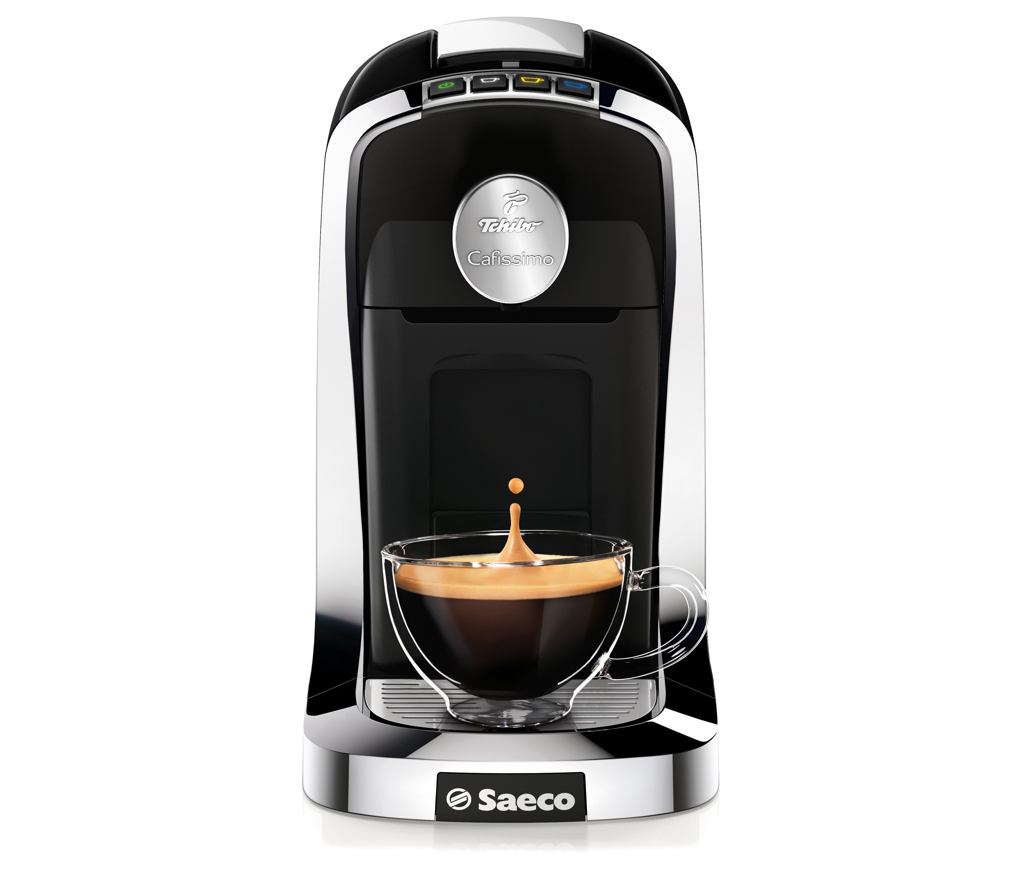 Statt über die Kapselkorpusfarbe erkennen Sie nun über die Tassen-Symbole auf den Kapselfolien, welche Taste Sie auf Ihrer Cafissimo Maschine drücken müssen. Denn auch auf den Bedienknöpfen der Maschinen finden Sie die gleichen Tassen-Symbole wieder.