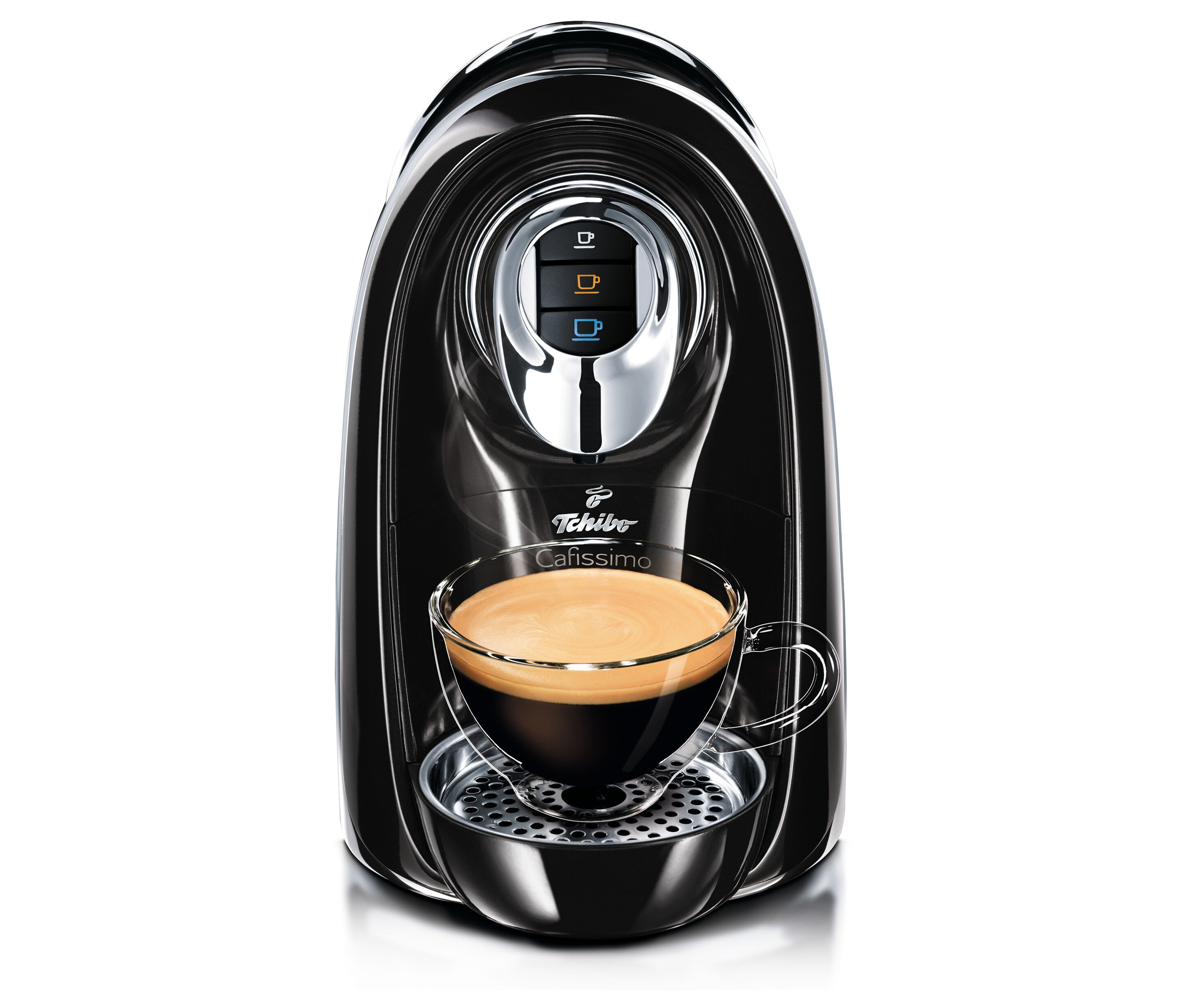 Das 3-Brühdruckstufen-System ist eine Besonderheit unserer Cafissimo Maschinen, denn jeder Kaffee benötigt für eine perfekte Zubereitung einen individuellen Brühdruck. Espresso mit hohem Druck, Caffè Crema mit mittlerem Druck, Filterkaffee mit wenig Druck. So kann sich bei der Zubereitung das Aroma perfekt entfalten. Über die verschiedenen Wahltasten für das jeweilige Wunschgetränk werden die erforderlichen Getränkeparameter (Druck, Wassermenge, Temperatur) gesteuert.